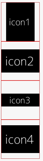 有时候界面会用循环来做一个点击列表,列表每一项一般会有小图标,但是每一项的图标比例可能并不一致,这时候就需要让它们根据自 身比例动态调节。 如下示例图,不同尺寸的 icon 都会按自身比例显示在同样大小的红框中而不会变形: